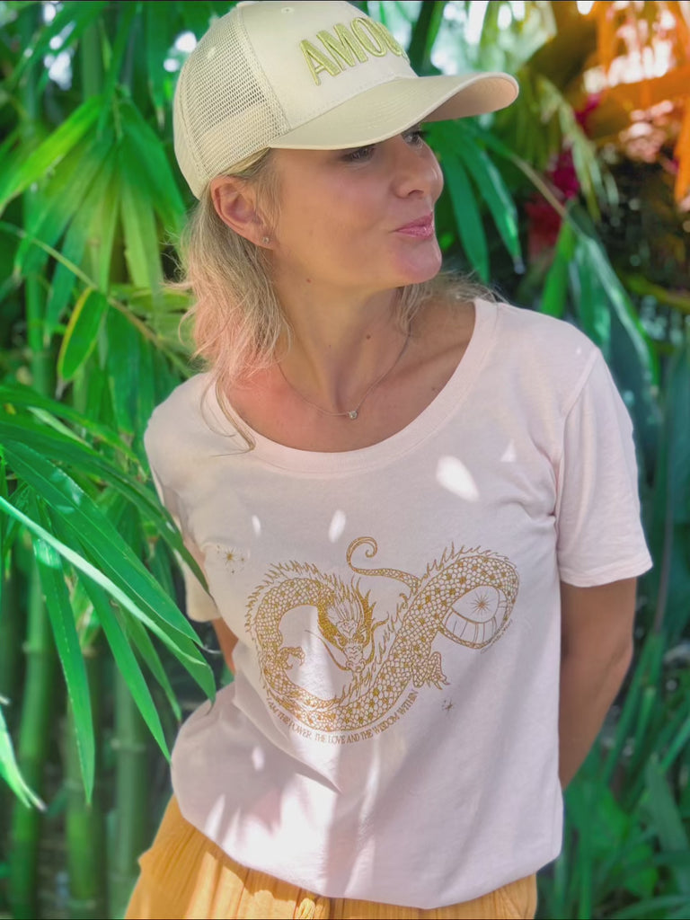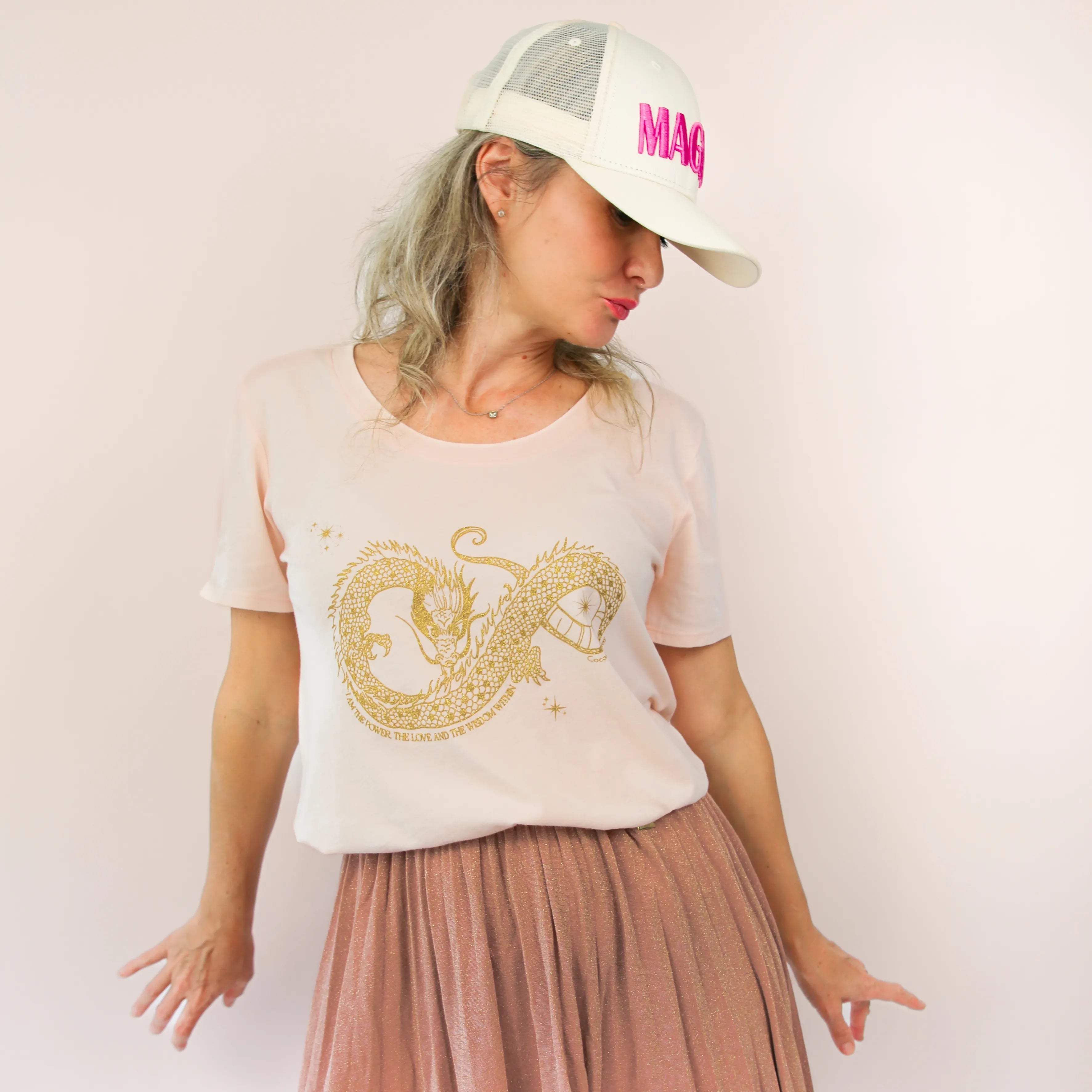 The Dragon Tee - Light Pink and Glitter Gold